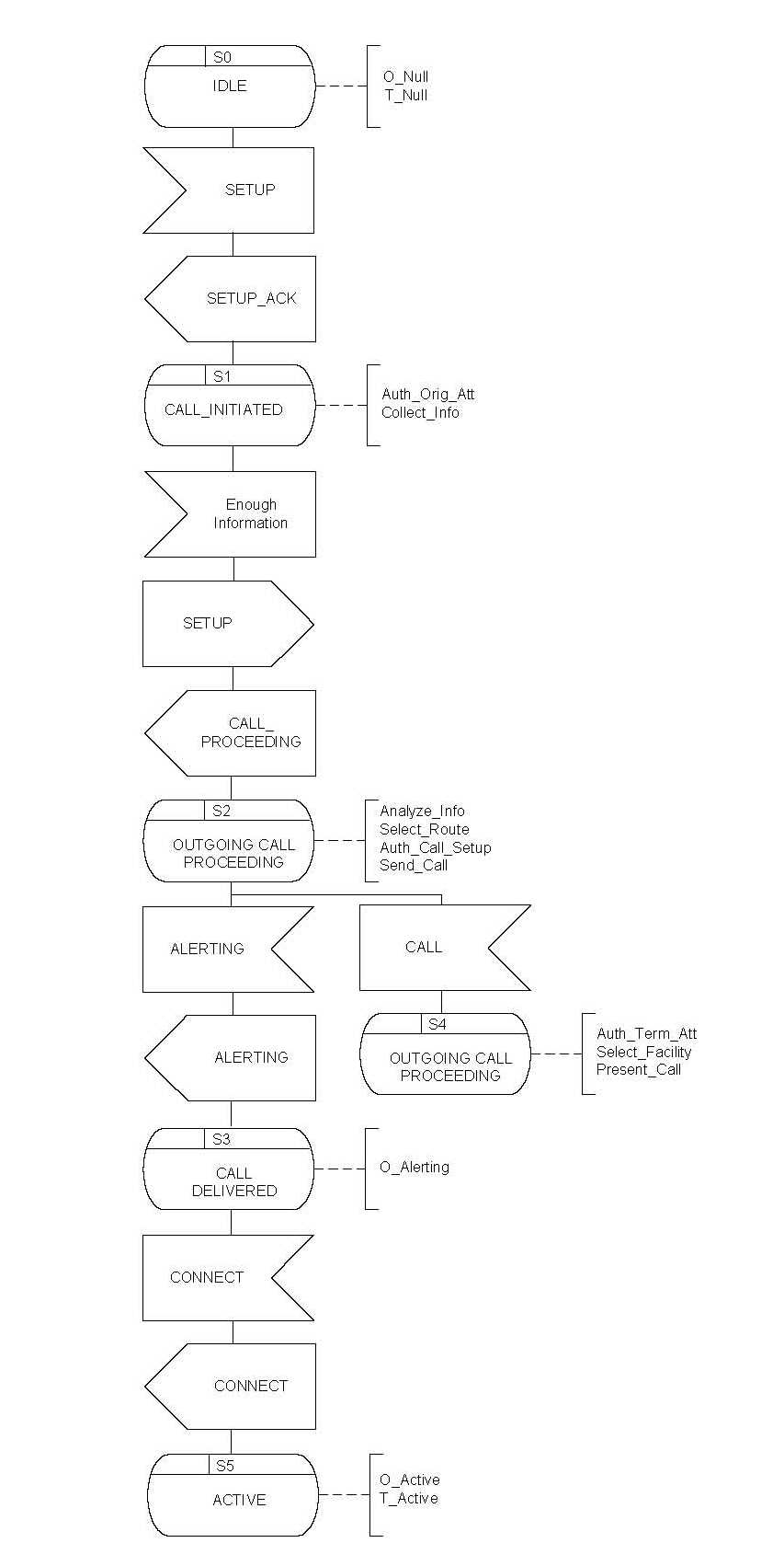Рис.4 Упрощенная SDL-диаграмма обслуживания исходящего вызова привратника Н.323 в соответствии с протоколом0.931.